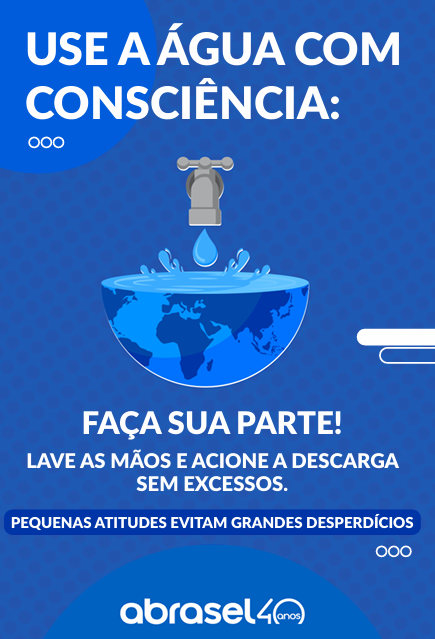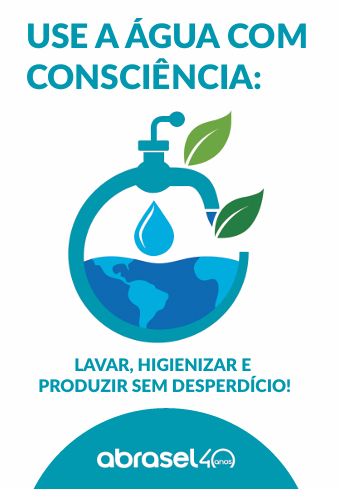 Cartaz de uso consciente da água : LAVAR, HIGIENIZAR E PRODUZIR SEM DESPERDÍCIO